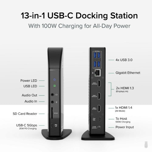 Regular price £175.5913-in-1 USB-C Triple Monitor Docking Station with 100W Charging, Compatible with Windows, Mac, and Chrome with Thunderbolt 3 / 4 or USB-C (3x HDMI, 1x USB-C, 4x USB, Ethernet, SD Card Reader)Key Features Powerful Expansion—USB C... -