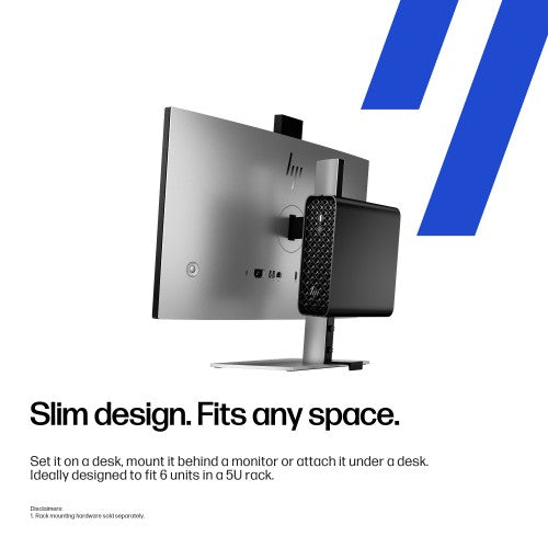 Create your ideal workspace with a versatile, modern design that can be positioned horizontally or vertically. Set it on a desk, mount it behind a monitor or attach it under a desk. Perfectly suited for rack environments, fit 6 units in a 5U rack.[3]Power AI-accelerated workflows