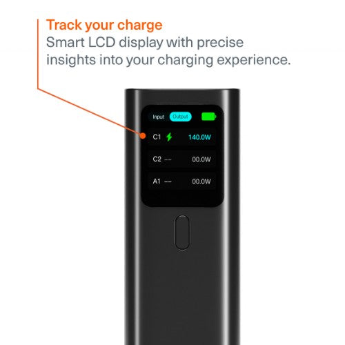 Stay informed with the smart LCD display. Monitor the charging speed of connected devices, remaining battery life, and the Power Bank’s battery temperature in real time.