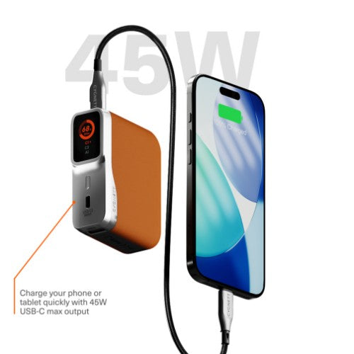 - 45W fast charging: Charge your phone or tablet quickly with 45W USB-C max output