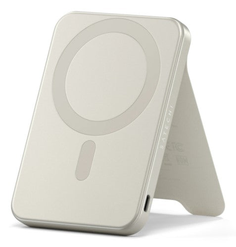Stay powered anywhere with the OntheGo™ Power Bank with Stand. Designed for a mobile lifestyle, its compact and ultra-portable design houses a 5,000mAh battery that delivers 15W fast charging. Magnetic attachment ensures easy alignment, and a quick press of the power button starts charging your device instantly. Built with intelligent safety features to prevent overheating, it provides a safe and reliable charging experience. The built-in stand features sturdy, durable hinges that allow for smooth adjustments, giving you the flexibility to find the perfect viewing angle. It enables convenient hands-free viewing in both portrait and landscape modes. Slim, lightweight, and stylish, the power bank features an aluminum frame, premium material, and a soft silicone charging surface for precise magnetic alignment. Currently only shipping within the contiguous United States.Compact and Portable