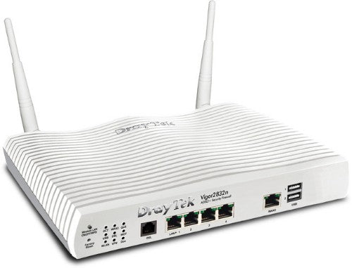 Vigor 2832 Series ADSL Router FirewallThe Vigor 2832 series (including the Vigor 2832n) is our new router/firewall for ADSL lines. Alternative WAN ports can insead provide connectivity to Ethenet feeds, secondary xDSL modems or a 3G/4G cellular service using a supported USB adaptor. This latest router series includes support for professional features such as VLAN tagging, Gigabit Ethernet built-in WiFi ('n' models).