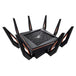 Team Up Your ROG Gears For Victory ROG PCs (motherboard, laptop, desktops) and ROG wifi routers together with Game First V network acceleration software ensure smoother online game with lower ping and less lag. No matter wire or wireless, Game First and Game Boost prioritise gaming packets and decrease so that you do not miss a bullet from the back. Triple-Level Game Acceleration GT-AX11000 provides triple-level game acceleration to boost game traffic every step of the way. This lowers ping rate and reduce game latency for better gaming experience Port Forwarding In 3 Steps Port forwarding is critical for gamers, to avoid the awkward situation of not being able to team up with friends. Open NAT on GT-AX11000 cannot be easier, it only takes 3 steps. No more frustrating and complicated process needed. ROG Gaming Centre: Rule Your Network GT-AX11000 is designed with just one mission in mind: Make your gaming network awesome. It's packed with powerful gaming optimisations, and delivers dominating Wi-Fi performance, rock-solid stability and state-of-the-art security. The ROG-themed Gaming Centre interface provides easy point-and-click control over every incredible feature. Don't Trust Your Victory To Luck When it comes to ranking, a great connection to your game server is critical. Game Radar lets you check ping times to different servers4 before you play, so you can choose the best one and gain the competitive edge Keep Your Gaming Band Clean Tri-band networking lets you dedicate one 5GHz band to gaming only, so you can avoid competing for bandwidth with other devices on your home network. With dynamic frequency selection (DFS), ROG Rapture GT-AX11000 also unlocks 15 channels in the least-congested 5GHz bands, providing more bandwidth for all of your wireless devices. Simultaneous Gaming And VPN If you're fed up with virtual private networks dragging down game performance, ROG has the answer. ROG Rapture GT-AX11000 has a killer feature called VPN Fusion, which lets you run a VPN and an ordinary internet connection simultaneously! So even if other network users need to use a VPN, you can still enjoy maximum gaming speeds. Light Up and Win ROG Rapture GT-AX11000 is the first ROG router with Aura RGB lighting, which can display hundreds of colours and multiple effects for a stylish vibe that matches their other Aura-enabled gaming gear. Fortified Frontline Network Security ROG Rapture GT-AX11000 features AiProtection Pro powered by Trend Micro™ to defend your network from external attacks and threats by neutralising them before they can reach your devices. Even if your PC's security software isn't turned on, AiProtection Pro still protects your network from attacks and ntrusions, giving you added peace of mind. Battle Ready Hardware In addition to incredible wireless performance, GT-AX11000 comes with a 2.5G WAN/LAN port for up to 2.5X faster data transfers than regular Ethernet. The router is powered by a 1.8GHz 64-bit quad-core CPU to easily handle online gaming, supercharge USB data transfers and power LAN parties. For added convenience, a customisable button on the front of the router lets you instantly control a function of your choice, such as Aura RGB lighting, Game Boost or the DFS bands.Specifications