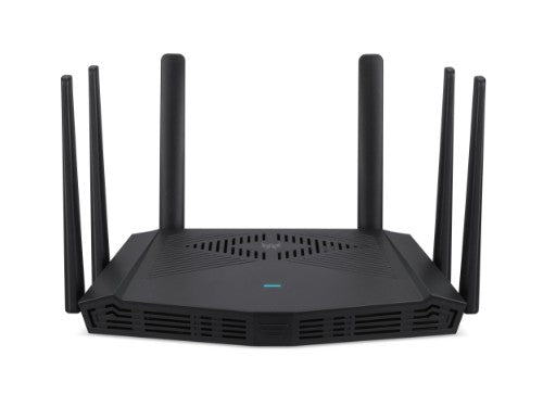 Acer Predator Connect W6x W-Fi 6 Gaming. WAN connection type: RJ-45. Wi-Fi band: Dual-band (2.4 GHz / 5 GHz), Top Wi-Fi standard: Wi-Fi 6 (802.11ax), WLAN data transfer rate (max): 6000 Mbit/s. Ethernet LAN interface type: Gigabit Ethernet. Product type: Tabletop router, Housing material: Acrylonitrile butadiene styrene (ABS). Antenna design: External, Antenna direction type: Omni-directionalSpecifications