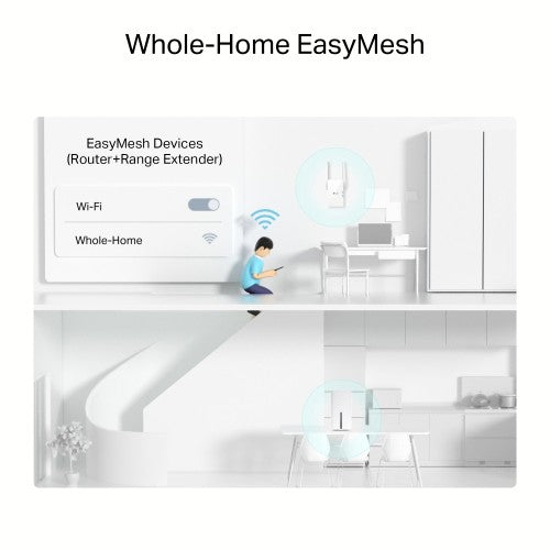 - EasyMesh-Compatible - Co-work with EasyMesh products, to provide a more flexible and cost-effective Mesh network with a single Wi-Fi name for seamless whole-home coverage