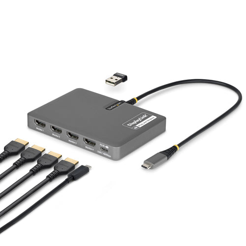 - Quad 4K60 Workstation Adapter: Transform your laptop into a productivity workstation by connecting four 4K 60Hz HDMI monitors while charging your laptop and connecting a wireless mouse or keyboard dongle, all through a single USB-C host connection
