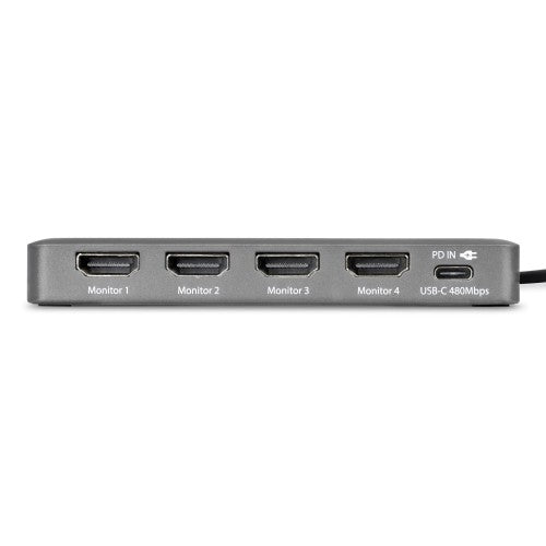 StarTech.com USB-C to Quad-Monitor Workstation Adapter, 4K 60Hz HDMI, 140W PD Passthrough for Laptop Charging, USB Port for Wireless Keyboard / Mouse, TAA