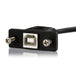 For customized USB device solutions; allows the USB connection to be mounted on a secure easily accessible panelThe USBPNLBFBM1 USB B to USB Panel mount cable features a USB type B male connector on one end, and a USB panel mount B (female) molded connector on the other, providing a convenient solution for custom enclosures (e.g. internally mounted hard drives).