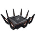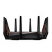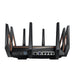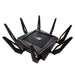 Team Up Your ROG Gears For Victory ROG PCs (motherboard, laptop, desktops) and ROG wifi routers together with Game First V network acceleration software ensure smoother online game with lower ping and less lag. No matter wire or wireless, Game First and Game Boost prioritise gaming packets and decrease so that you do not miss a bullet from the back. Triple-Level Game Acceleration GT-AX11000 provides triple-level game acceleration to boost game traffic every step of the way. This lowers ping rate and reduce game latency for better gaming experience Port Forwarding In 3 Steps Port forwarding is critical for gamers, to avoid the awkward situation of not being able to team up with friends. Open NAT on GT-AX11000 cannot be easier, it only takes 3 steps. No more frustrating and complicated process needed. ROG Gaming Centre: Rule Your Network GT-AX11000 is designed with just one mission in mind: Make your gaming network awesome. It's packed with powerful gaming optimisations, and delivers dominating Wi-Fi performance, rock-solid stability and state-of-the-art security. The ROG-themed Gaming Centre interface provides easy point-and-click control over every incredible feature. Don't Trust Your Victory To Luck When it comes to ranking, a great connection to your game server is critical. Game Radar lets you check ping times to different servers4 before you play, so you can choose the best one and gain the competitive edge Keep Your Gaming Band Clean Tri-band networking lets you dedicate one 5GHz band to gaming only, so you can avoid competing for bandwidth with other devices on your home network. With dynamic frequency selection (DFS), ROG Rapture GT-AX11000 also unlocks 15 channels in the least-congested 5GHz bands, providing more bandwidth for all of your wireless devices. Simultaneous Gaming And VPN If you're fed up with virtual private networks dragging down game performance, ROG has the answer. ROG Rapture GT-AX11000 has a killer feature called VPN Fusion, which lets you run a VPN and an ordinary internet connection simultaneously! So even if other network users need to use a VPN, you can still enjoy maximum gaming speeds. Light Up and Win ROG Rapture GT-AX11000 is the first ROG router with Aura RGB lighting, which can display hundreds of colours and multiple effects for a stylish vibe that matches their other Aura-enabled gaming gear. Fortified Frontline Network Security ROG Rapture GT-AX11000 features AiProtection Pro powered by Trend Micro™ to defend your network from external attacks and threats by neutralising them before they can reach your devices. Even if your PC's security software isn't turned on, AiProtection Pro still protects your network from attacks and ntrusions, giving you added peace of mind. Battle Ready Hardware In addition to incredible wireless performance, GT-AX11000 comes with a 2.5G WAN/LAN port for up to 2.5X faster data transfers than regular Ethernet. The router is powered by a 1.8GHz 64-bit quad-core CPU to easily handle online gaming, supercharge USB data transfers and power LAN parties. For added convenience, a customisable button on the front of the router lets you instantly control a function of your choice, such as Aura RGB lighting, Game Boost or the DFS bands.Specifications
