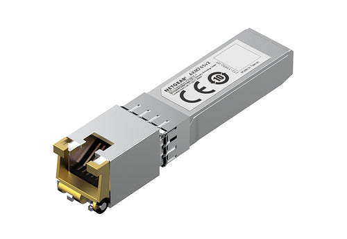 NETGEAR? 10GBASE-T SFP+ Transceiver (AXM765v2) delivers 10G copper connectivity with CAT6a or CAT7 cabling up to 80 meters (262.5 feet) when inserted in a switch SFP+ fiber module slot. The AXM765v2 fits into SFP+ or SFP28 interfaces of M4250 M4300 and M4500 Managed Switches.