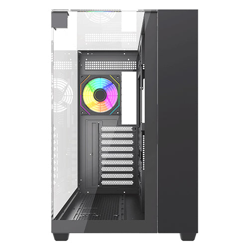 Immerse yourself in a 360-degree view of your build with triple tempered glass panels—front, left, and top. Every component, every LED, every detail is showcased in breathtaking clarity. ARGB Brilliance: Illuminate your system with vibrant ARGB lighting, controlled by the included ARGB hub and compatible with motherboard synchronization. Create a mesmerizing light show that reflects your unique style.