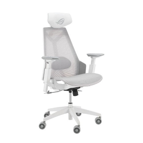 ROG Destrier Core ergo gaming chair with futuristic cyborg aesthetic, versatile seat adjustments for the perfect posture, mobile gaming arm support mode, and crafted from durable polyamide nylon and breathable mesh for comfortable marathon gaming sessionsSpecifications